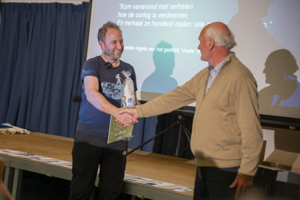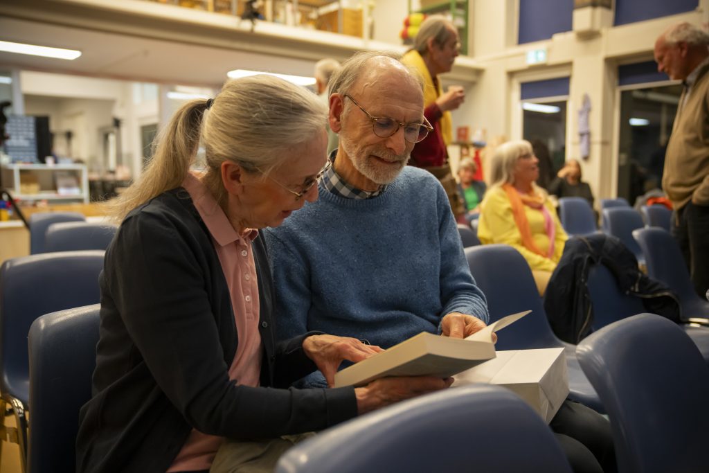 Ook waren Maarten en Marie José van de Paadjesmakers aanwezig met hun wandelgids: ‘Langs de struikelstenen in ’s-Hertogenbosch’. Deze wandelgids verkochten zij tijdens de pauze.